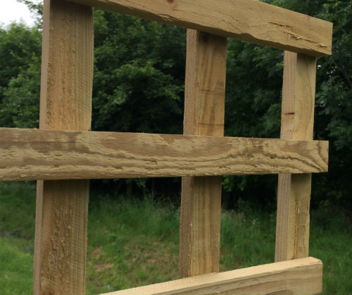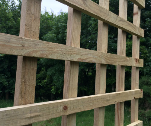 A trellis for v notched closeboard fencing. Now made with a sawn finish batten. This product has a 100mm hole approx