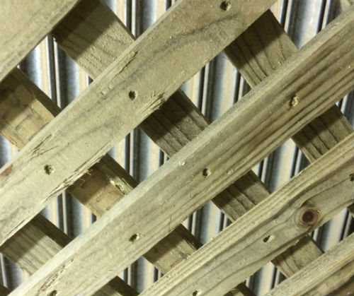 A diamond trellis for v notched closeboard fencing. Now made with a sawn finish batten. This product has a 40mm hole approx